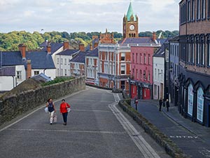 町自体は、古い城塞都市の例に漏れず、中世には中心部を取り囲む石壁で囲まれており、所々に門があり、そこで検問が行われていました。今、アイルランドの多くの都市で、その壁の跡が部分的に残っていますが、デリーは唯一、それが完全な形で残っています。壁の上を歩いて一周する歩道も整備され、そこからの街の眺めも素晴らしいです。